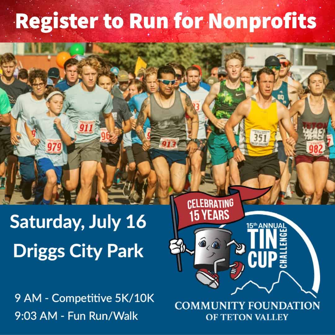 The Tin Cup Challenge, produced annually by the Community Foundation of Teton Valley, includes a nine-week giving period capped by a day of running and community celebration. In four years, the event has raised more than $3.7 million to benefit Teton Valley nonprofits with match donors giving over $1.3 million. The Tin Cup is supported by over 400 volunteers who donate more than 1500 hours to the success of the event. For more information please visit www.tincupchallenge.org.