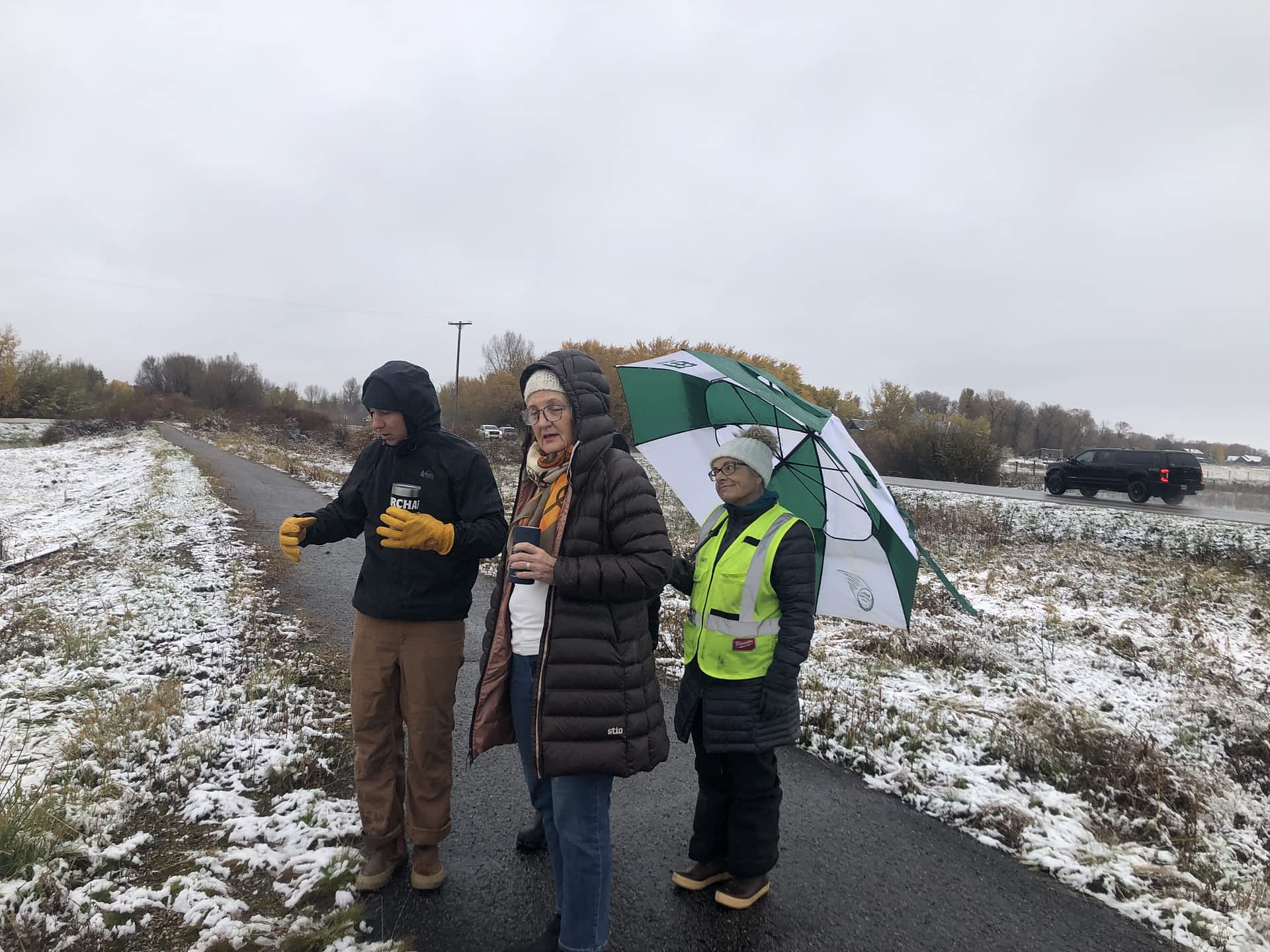What have we accomplished thus far? We’ve engaged Prospect Studio in Wilson to create a site plan. Talented local artist, Stacey Walker Oldham, designed our wonderful logo. We’ve had many conversations with the Idaho Transportation Department and Teton County about the project. In the Fall of 2023, we planted eight test plots of native wildflowers and grass seeds on private land with varying soil conditions. As seedlings emerge, we’re checking to see what flourishes in different zones.