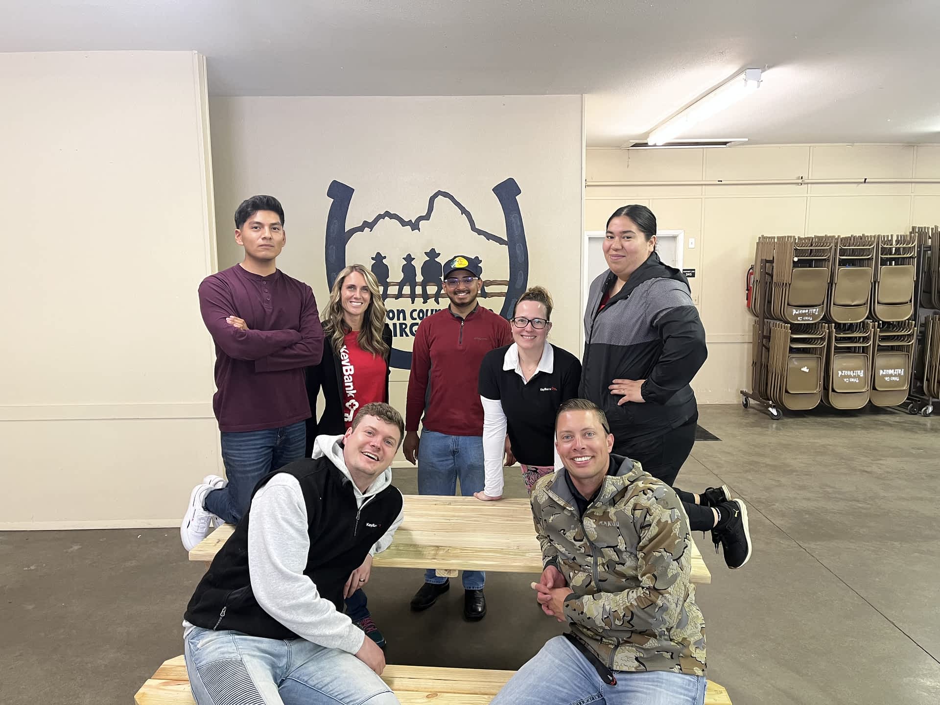 Many projects come to fruition at the fairgrounds by group effort, and the picnic tables were no different. They purchased the ten tables with the Competitive Grant, a grant from Silver Star, and some of their Tin Cup funds. The tables arrived in May, and a service day was scheduled with local Key Bank volunteers for mid-June. Fairgrounds staff used the tractor to unload the pallets of table pieces in the fair building. Fortunately, seven Key Bank employees, staff, and a few volunteers assembled the tables by the day’s end. This day allowed the group to get to know one another and share their stories of Fairground events and favorite fair memories. We were happy to provide VIP passes to those who wanted to attend our 100-year Fair in August!