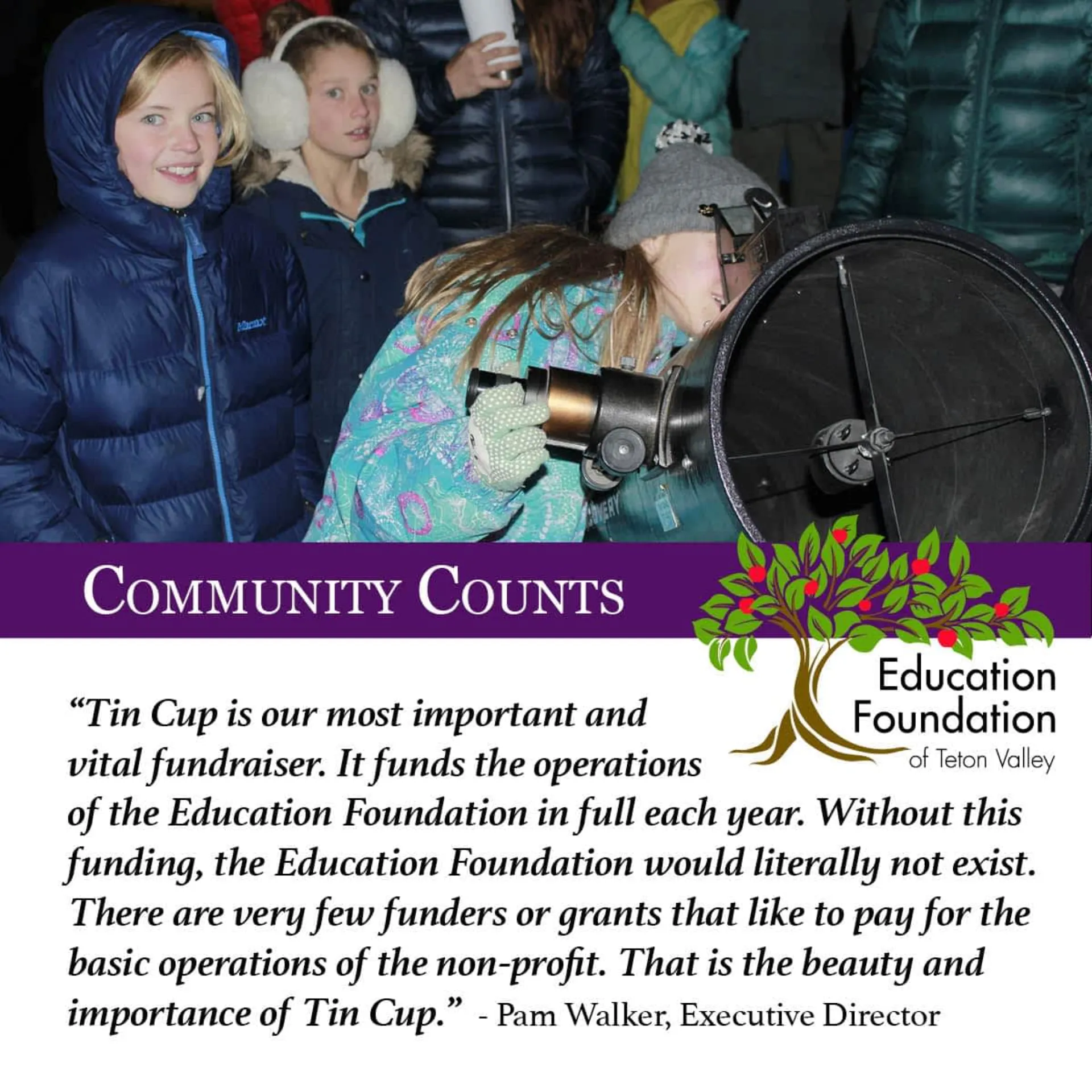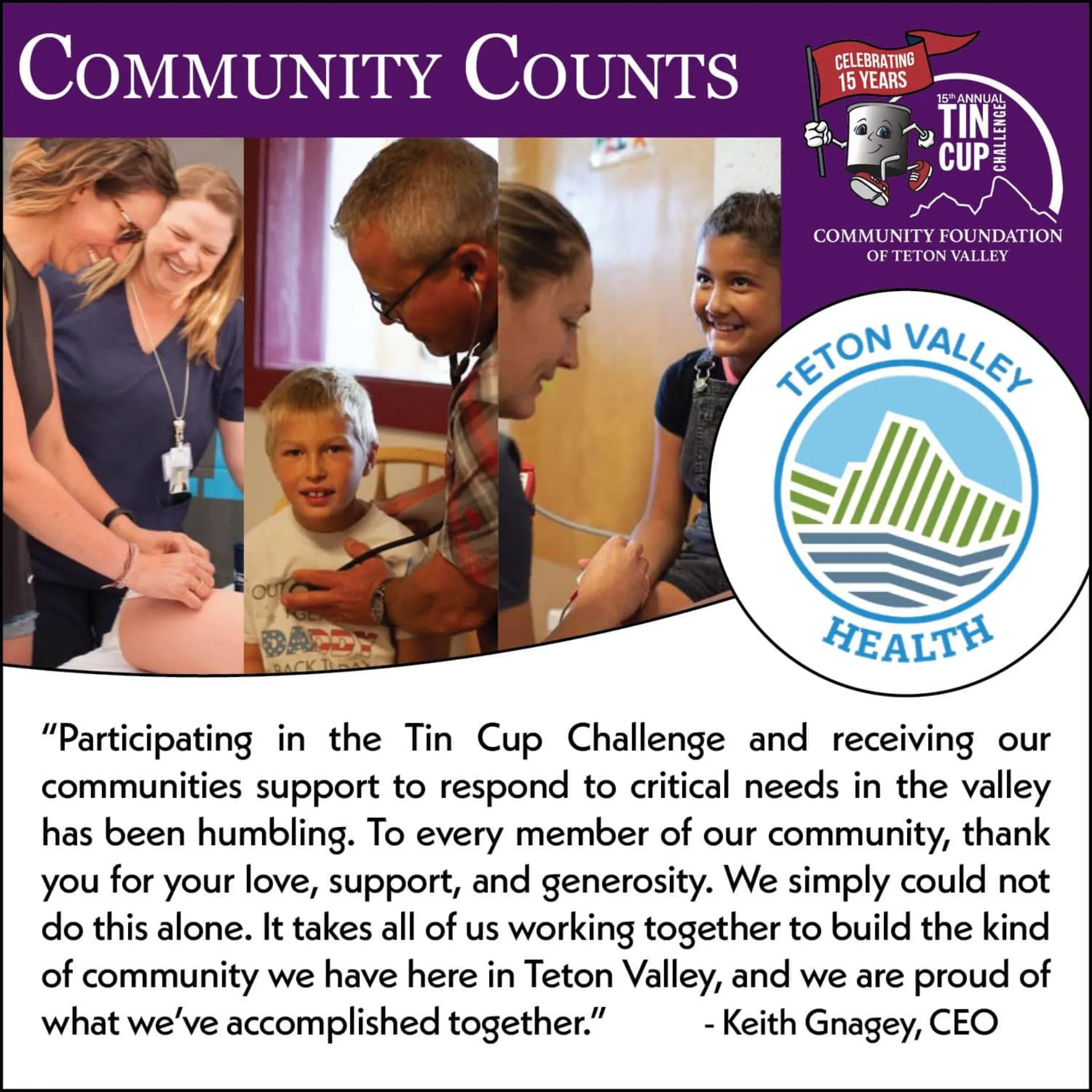Total Funds Raised During Teton Valley’s Premier Giving Event Surpass $1 Million Thanks to the incredible generosity of the Tin Cup Community Challengers and individual donors, the Community Foundatio