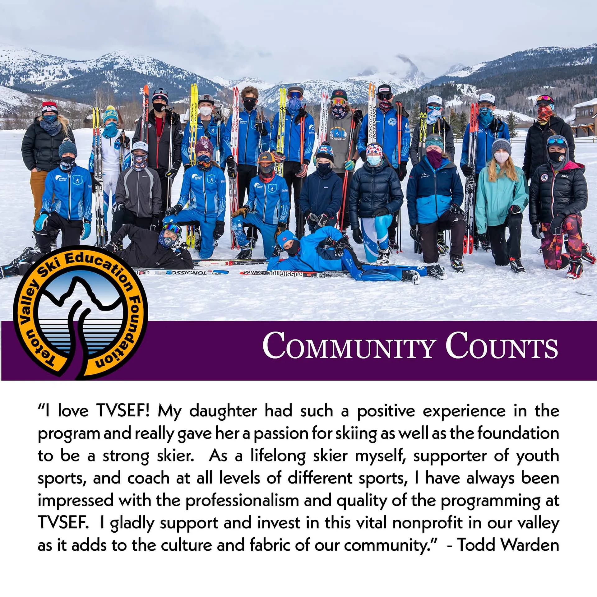 The Teton Valley Ski Education Foundation is a local nonprofit with a focus on providing an affordable winter sports program that offers skill improvement and leadership training, builds self-confiden