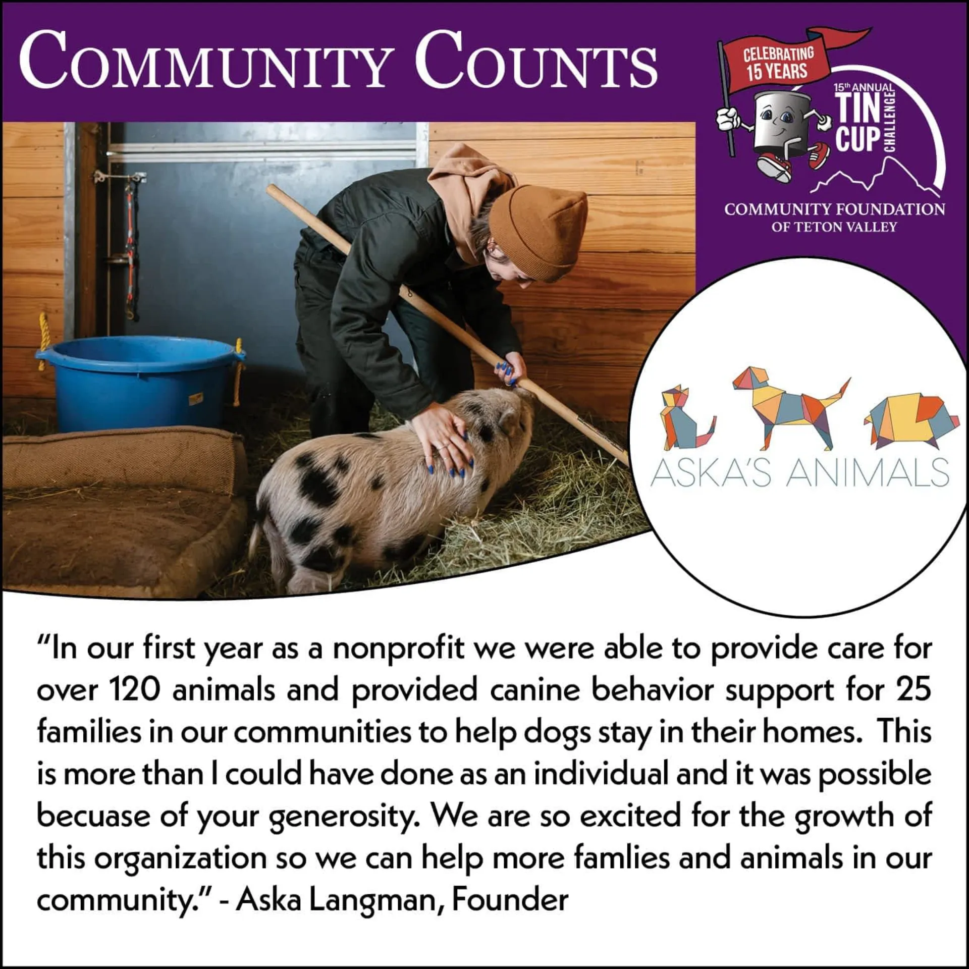 With your support through the Tin Cup Challenge, we can continue advancing our mission to provide rescue, sanctuary, and canine behavioral support—not just for dogs, but for their people and …