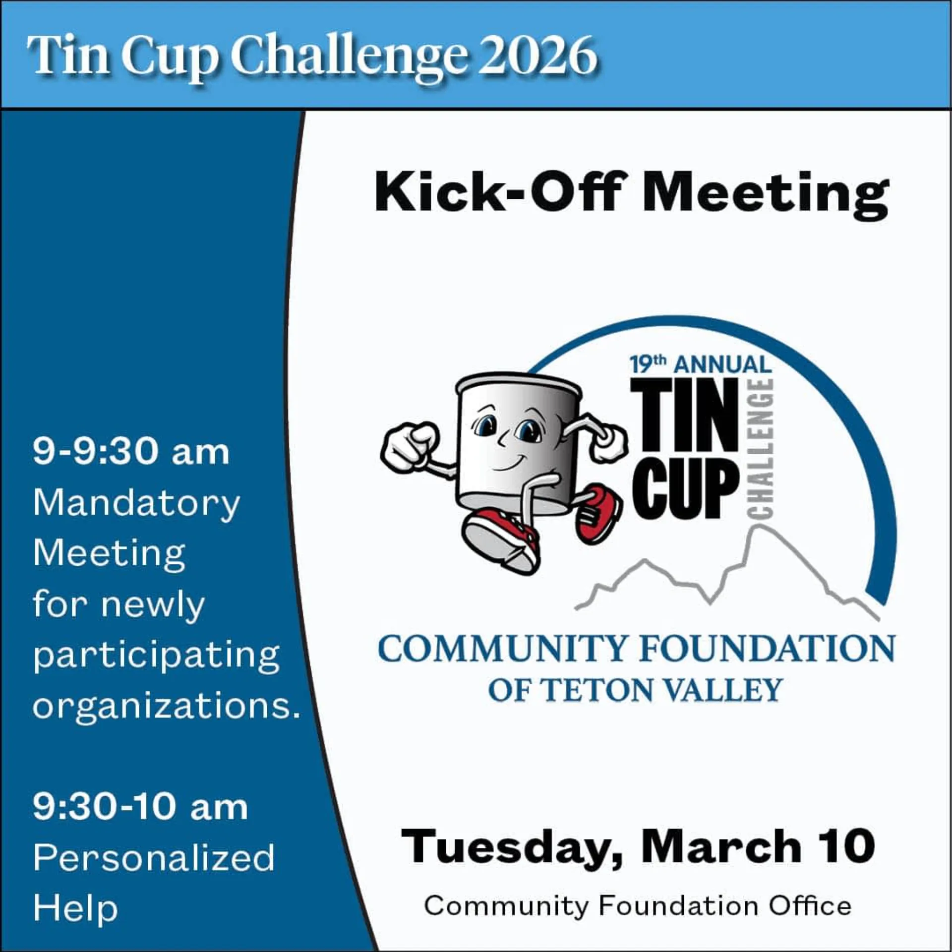 The Community Foundation of Teton Valley is pleased to announce the launch of the 19th Annual Tin Cup Challenge and the official opening of the application period. A Kick-Off Meeting will be held on T
