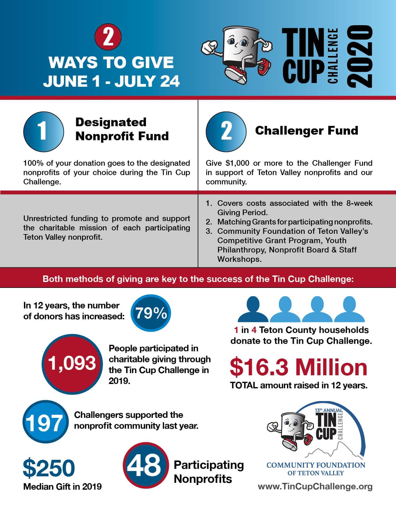 With less than a month left in the Giving Period, it’s important to note that there are two ways to give during the Tin Cup Challenge. Both ways of giving are integral to the success of this model. Giving designated gifts to nonprofits is the most direct way to support the organizations you love. In these dire times, your gift, of any amount, helps illustrate how much each organization and their mission mean to our community. The other option is to support Teton Valley’s collective of nonprofits through a…