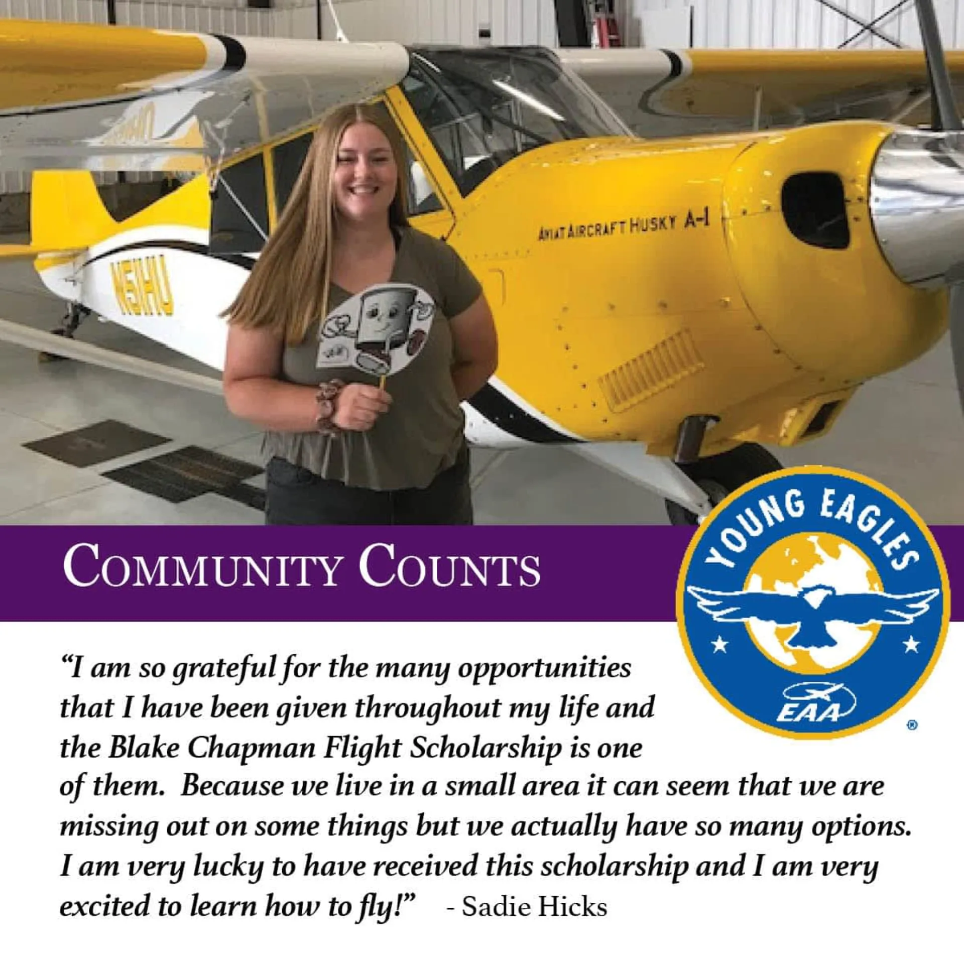 The Blake Chapman Young Eagles Flight Scholarship was created by a passionate group of individuals who wanted to provide students in Teton County, ID, with the opportunity to learn to …