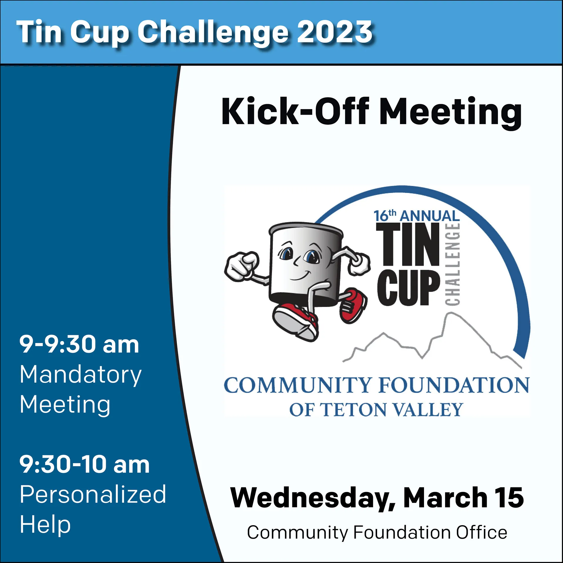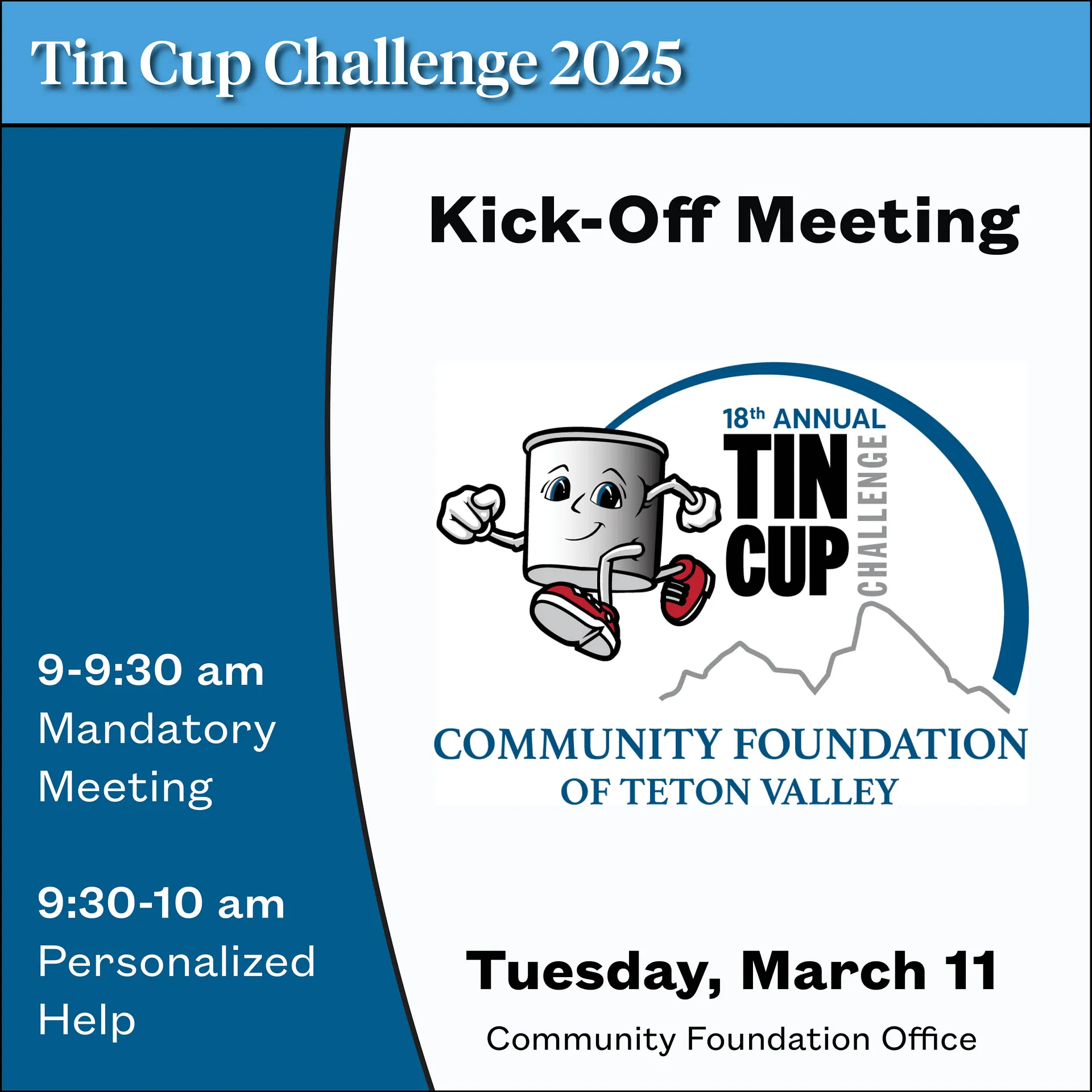 The Community Foundation of Teton Valley is pleased to announce the launch of the 19th Annual Tin Cup Challenge and the official opening of the application period. A Kick-Off Meeting will be held on T