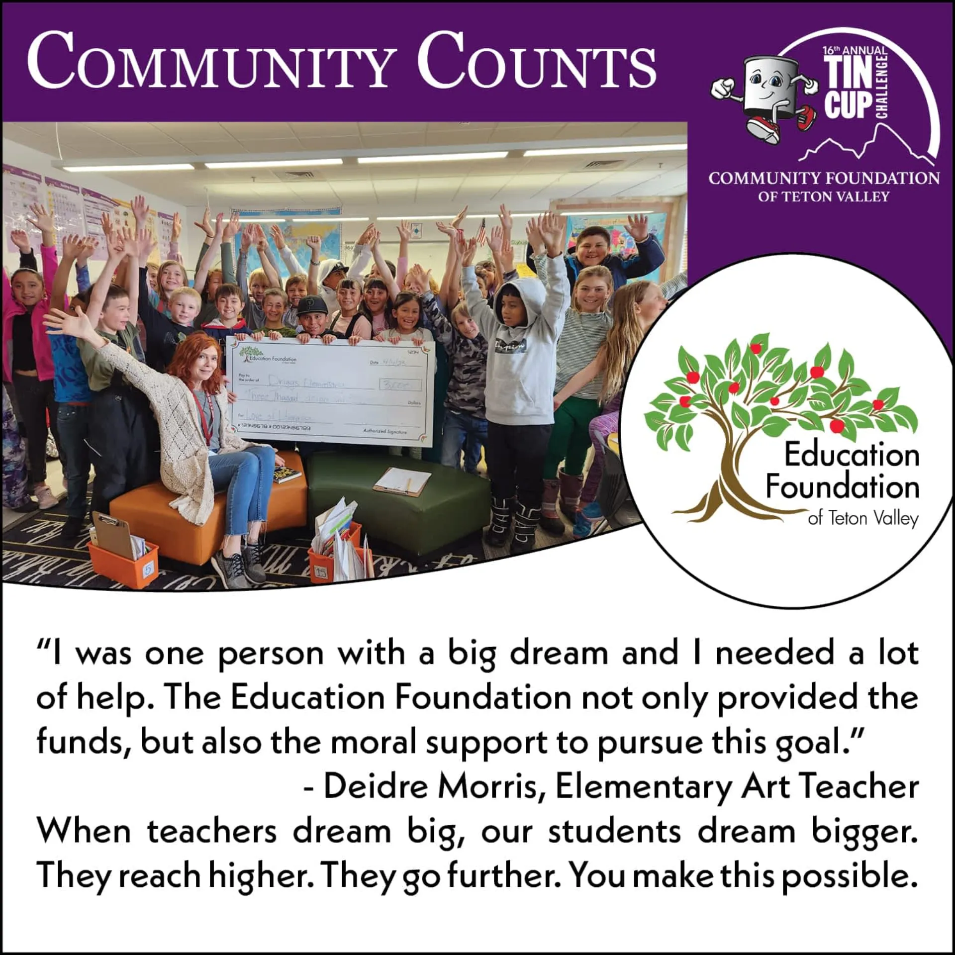 The Community Foundation of Teton Valley Announces Highest Tin Cup Challenge Match Percentage to Date