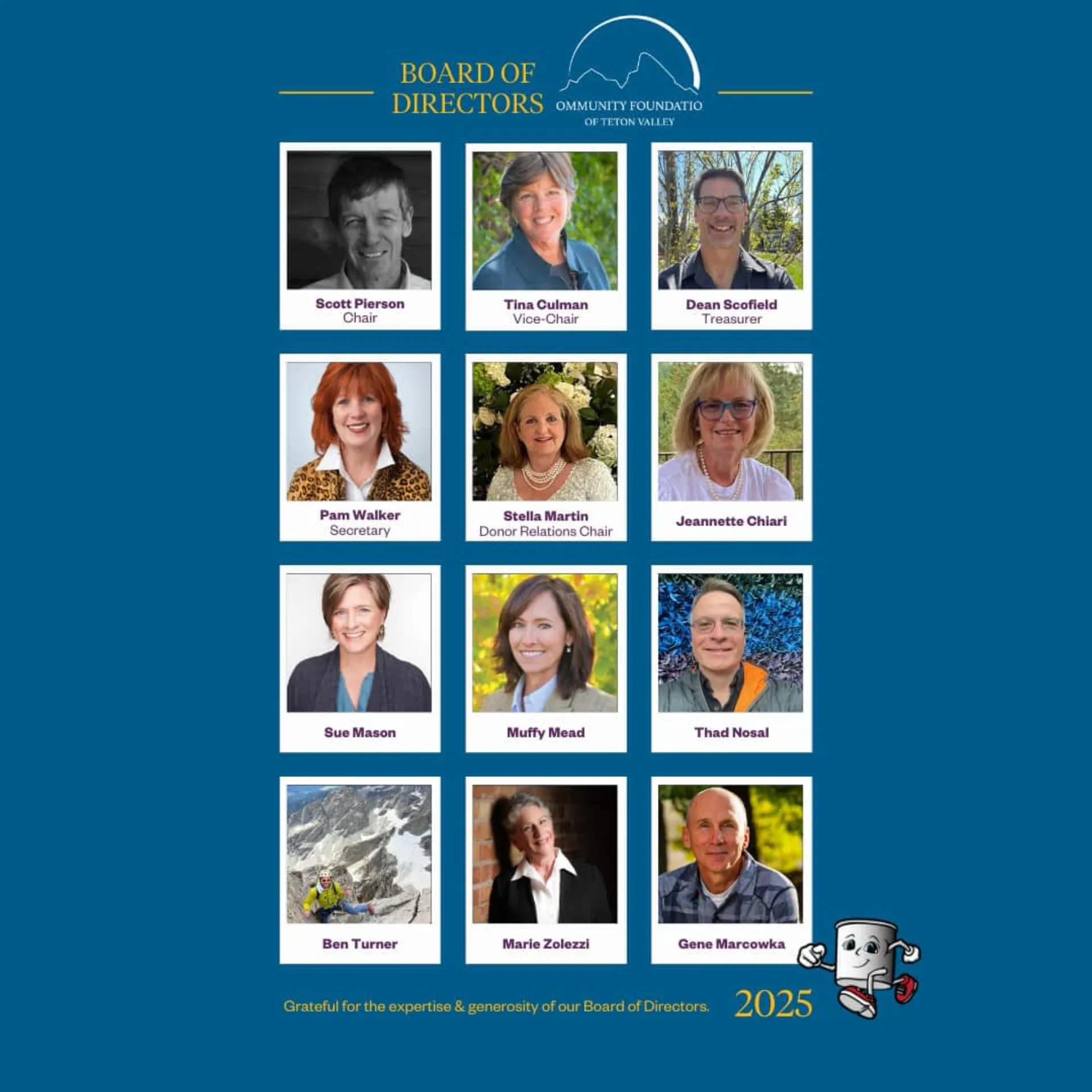 The Community Foundation of Teton Valley recently welcomed Jeannette Chiari, Thad Nosal, Dean Scofield, and Ben Turner as new board members. New governance and committee roles for existing members wer