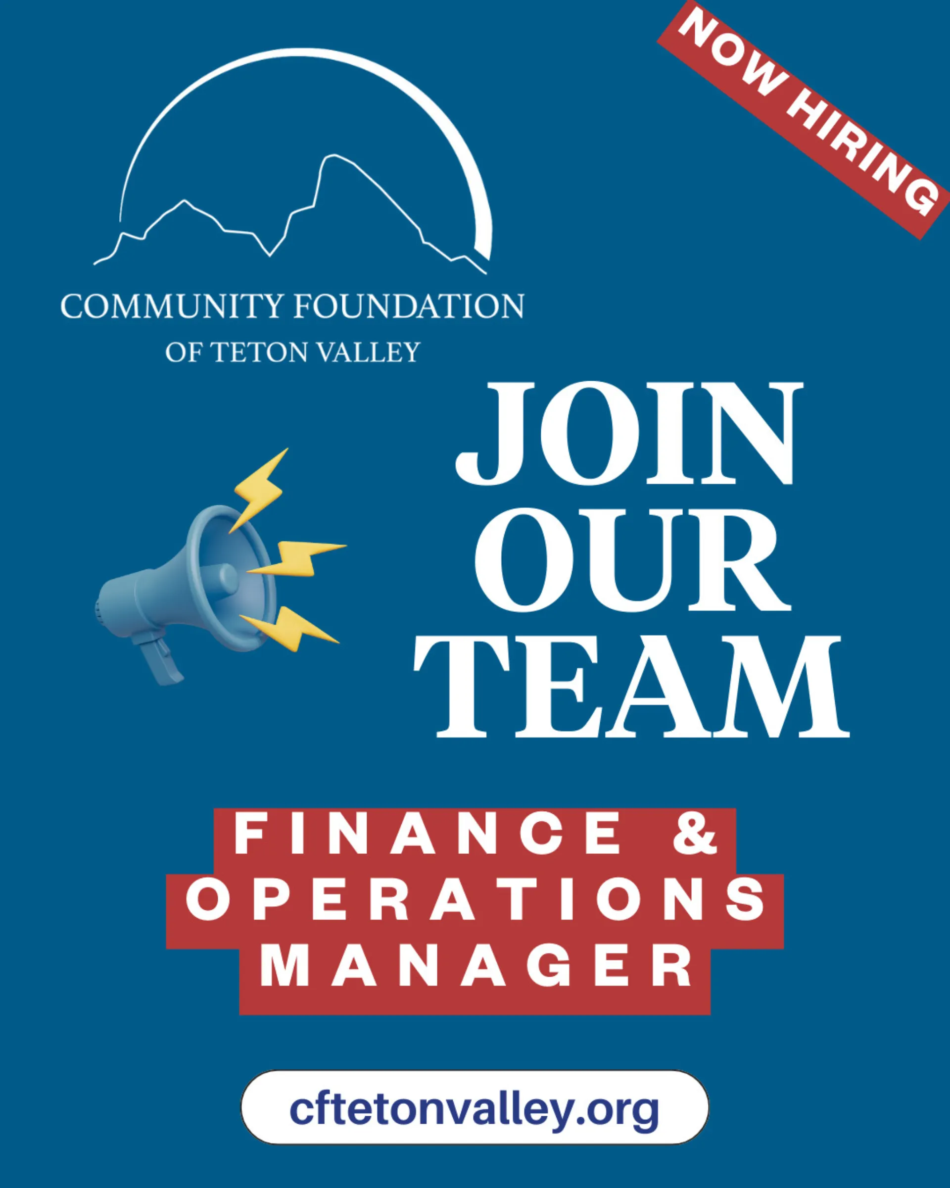 The Community Foundation of Teton Valley is hiring an experienced nonprofit professional to join our team as the Finance & Operations Manager. Responsible for overseeing the day-to-day financial and o