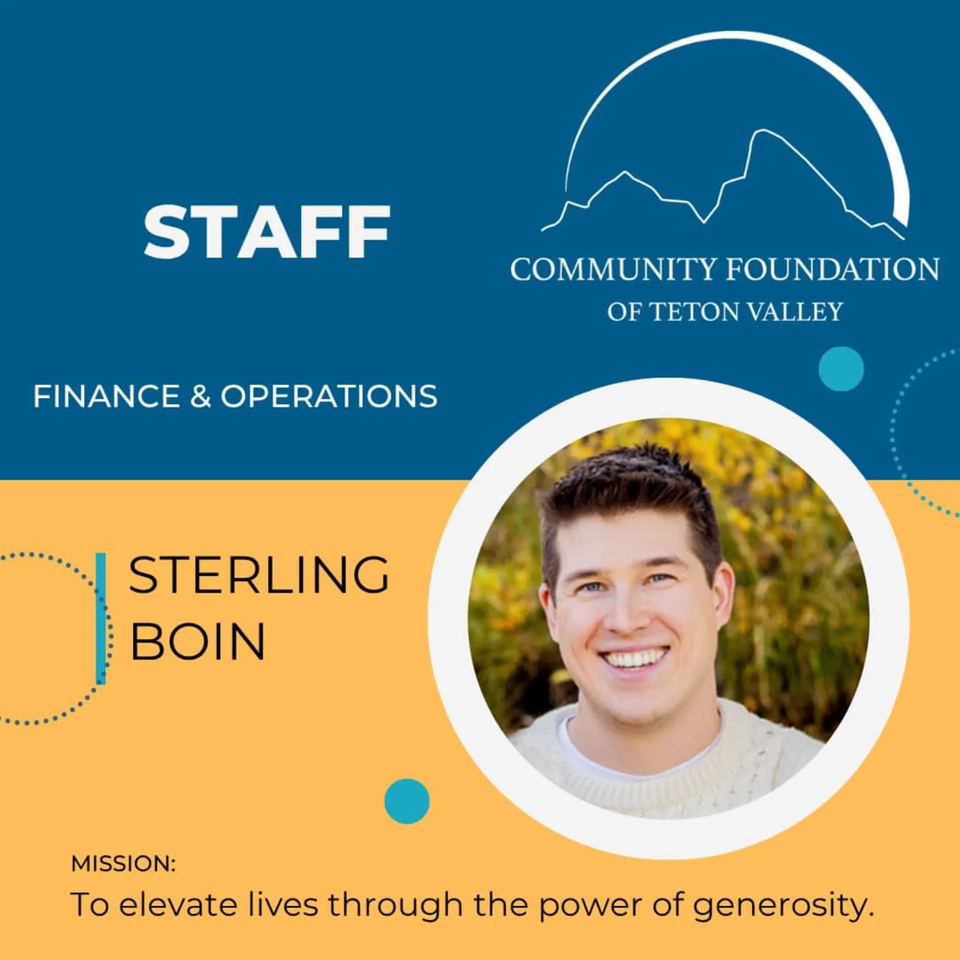 The Community Foundation of Teton Valley is pleased to announce that Sterling Boin has joined the team as Finance & Operations Manager. As the Foundation moves toward full independence from the Commun